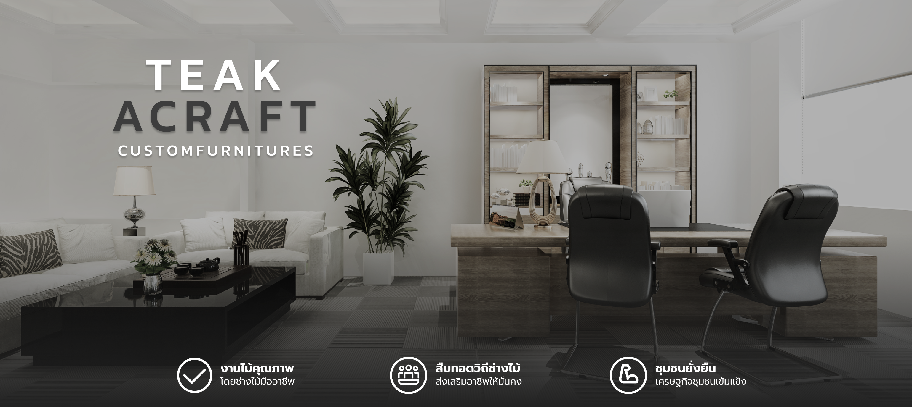 เราสร้างสรรค์เฟอร์นิเจอร์ไม้สักเก่า ผลิตและส่งออกเฟอร์นิเจอร์ไม้สักไปยังทั่วประเทศไทย ภายใต้ชุมชนบ้าน สล่าไม้ ตำบลมะเขือแจ้ อำเภอสันกลาง จังหวัดลำพูน